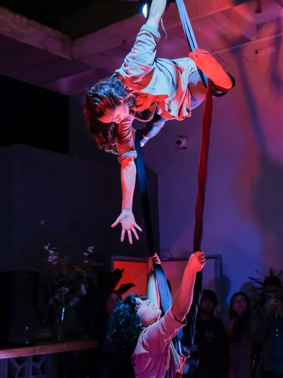 Camila: Õppisin Pontificia Universidad Católica del Perú, PUCP ülikoolis humanitaarteadusi ja sotsiaalpsühholoogiat, sest uskusin alguses, et minust saab sotsiaalpsühholoog. Pärast lõpetamist mõistsin aga, et see ei ole minu tee. Hakkasin osalema tsirkusetundides ning sealt edasi süvenes mu huvi kaasaegse tsirkuse vastu. Tsirkusekoolist kujunes minu jaoks oluline keskkond: alustasin koostööd õpetajatega ja sain lõpuks ka kompanii liikmeks.